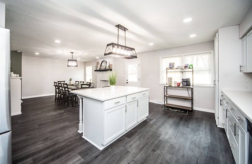 If you are seeking an ideal wedding accommodation near Kansas City, the 7 Bedroom 5 Bath 4500+ Square Foot home with a pool table offers everything you need for a memorable stay. This newly updated property provides ample space and amenities that cater to large wedding groups.