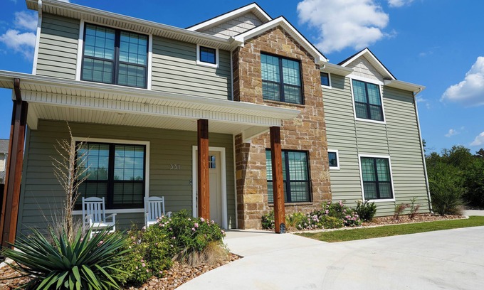 New house completed in 2024, located in the fast growing community of Stephenville, Tx. The home is big enough to host the entire extended family and friends. Each bedroom has its own private full bathroom and smart TV. The home features upstairs and downstairs living spaces that include a pool table and wine fridge. The home boasts granite countertops, ample natural light, an open floor plan and all brand new furnishings! The backyard is a great place to hang out with its own grill and gas fire pit. The house includes 2 bedrooms with king beds, 2 bedrooms with twin beds, and 3 bedrooms with queen beds. Situated in a convenient location, visitors will have easy access to nearby amenities, restaurants, and Tarleton State University.