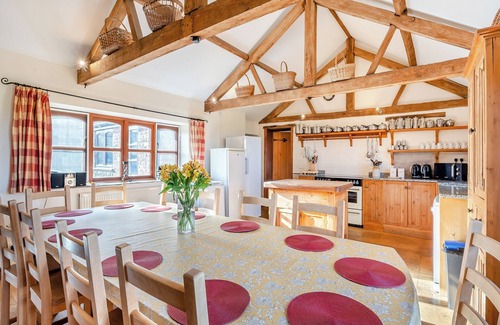 Shower Room: Cubicle Shower, Toilet. Oil central heating, electricity, bed linen, towels and Wi-Fi included. 2 travel cots and 2 highchairs. Patio with garden furniture. 650-acre grounds (shared with other properties). Private parking for 7 cars. No smoking. Please note: The property has a natural water supply from a spring.. The Stables is a detached stable conversion and benefits from a large, open-plan kitchen/dining-room with a high ceiling and beams, a living room with a wood-burning stove and also has its own garden with great views over the surrounding countryside. The holiday property stands in the grounds of the owners’ 650-acre organic dairy farm; there are lovely walks from the doorstep amid the farmland. The Dorset Gap is nearby for walks amid stunning scenery, while sandy bays and nature reserves can be found along the World Heritage Coastline just 18 miles away. Dorchester (Thomas Hardy’s Casterbridge) is within driving distance for a wide range of attractions, including a lively weekly market with the beautiful Maiden Castle sure to be a highlight. A trip to the charming town of Cerne Abbas with its Tudor architecture, tea rooms and the nearby Cerne Giant is also a must on any itinerary.