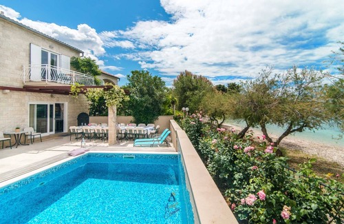 7-BR Beachfront Villa with Seaside Terrace and Heated Swimming Pool | Villa in Supetar