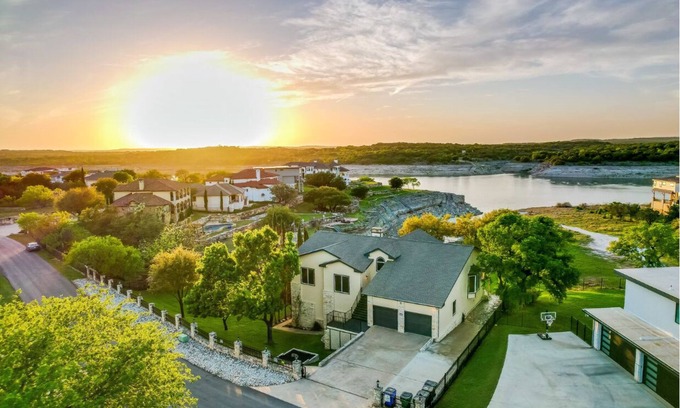 Our home has been completely remodeled this winter 2023, interior is brand new. Rare lakefront property with large entertaining home on deep water cove with huge 2000sqft dock. Home on approx. 2 acres with over 6000 square feet of living area + 3000sq ft of decks overlooking on one of the prettiest coves on Lake Travis. Wonderful views of Lake Travis and the western sunsets. 7 bedrooms (huge Master overlooking lake), 4 full baths and a huge game/media room. Covered boat dock for all the fun you can imagine. Manicured lawn, outdoor fire pit and sitting area in yard. Fishing heaven right from our dock for you fisherman with Xmas trees from years past sunk down below in 50 feet of water below dock. Huge game room with sectional couch/55"TV to watch the games, ping pong table, foosball table and card table. Great for families with large gatherings. Perfect escape for family gatherings. Easily sleeps 14 adults in beds + 3 bunk beds= 6 beds) and two additional day beds in common area to accommodate 14 adults and 6 or 8 kids. (note, we do not allow more that 14 adults as we only have 7 bedrooms and we are not a party house trying to stack a bunch of grown folks on couches, etc)