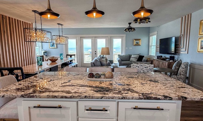 This 2-story group-friendly beach home is designed for comfort and flexibility: