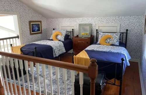4 BR 2 bathroom farm house nestled on 70 acres to hike and explore. 20 miles from Red River Gorge. Large deck with grill. Large Stocked pond with dock perfect for fishing and kayaking. Fire pit & chairs. 1st floor- Family room with TV & games. Full Bathroom bathtub/shower. 1 BR- full size bed. 2nd BR- king bed. 2nd floor- 1 BR- full sized bed. Full bathroom stand-up tiled shower. Large living room and well stocked kitchen. A small loft with 2 twin beds is on the third floor of the house with TV