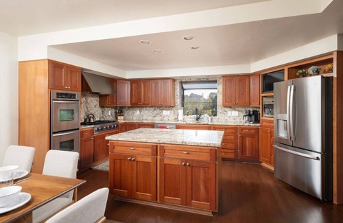 The chef’s kitchen is fully stocked and ready for anything from casual meals to elaborate dinner parties. With modern appliances, ample counter space, and every tool you'll need, preparing meals here is a breeze. Two designated office spaces also offer the perfect setting for remote work or quiet study during your stay.