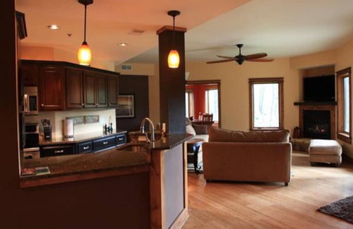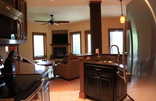 As part of the Trout Hills Condominiums nestled next to a winding lake, Condo #701 is a 2 bedroom, 2.5 bathrooms condo, offering state-of-the-art amenities, the finest of furnishings, a fully equipped kitchen (with a double oven and icemaker), wireless internet access, digital music system, cable/satellite television, gas fireplace, dining room, keyless entry, private garage and an outdoor patio with a ceiling fan that walks out to the lake and to our outdoor fire pit.