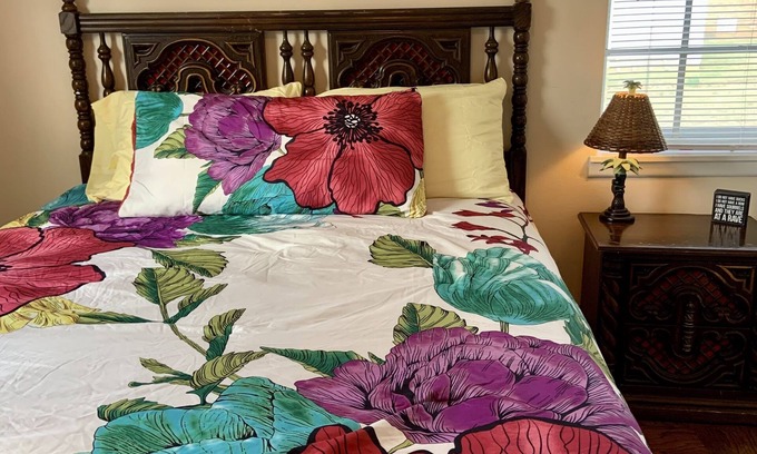 This fun and vibrant 70’s inspired house is close to everything, making it easy to plan your visit to Florence. There are 3 bedrooms with 2 queen size beds and 2 twin size beds. There is 1 full bath. This house has a fully fenced in backyard with a fire pit.