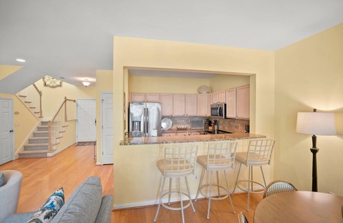 Both the master and guest bedroom are upstairs and include a king bed and en suite bathroom. Large soaking tub in the master bath. The last bedroom is located on the 1st floor and has a new queen bed and jack and jill bath. Queen sleeper sofa added in the living room along with new furniture in 2024. The living room opens up to the dining room creating an inviting space to hang out and be together.