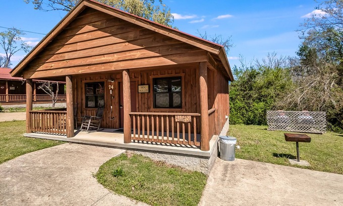 Just one block from the historic Mountain View courthouse, this cabin offers the perfect mix of cozy charm, comfortable amenities, and unbeatable location. On most temperate nights, you can hear the sweet sound of folk music drifting through the trees—an authentic Ozark experience just outside your door.