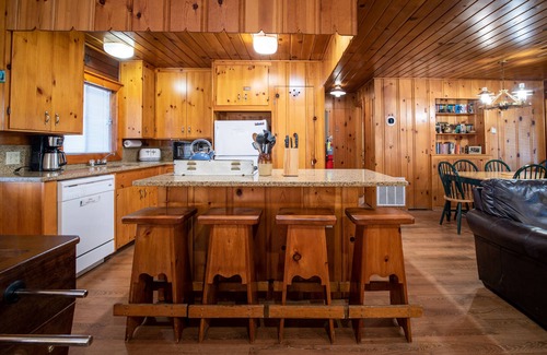 Howard's Retreat is a charming 2 bedroom, 2 bathroom home that sleeps up to 6 guests. The fully equipped kitchen includes a dishwasher. The living room has a fireplace (wood provided in season), satellite TV, and WiFi. The private deck has a gas BBQ, dining tables with chairs, and a porch swing, perfect for grilling, dining, and enjoying the outdoors! No pets allowed. The cabin has Central Air and heating."EV Charging Station available within five miles of the cabin.