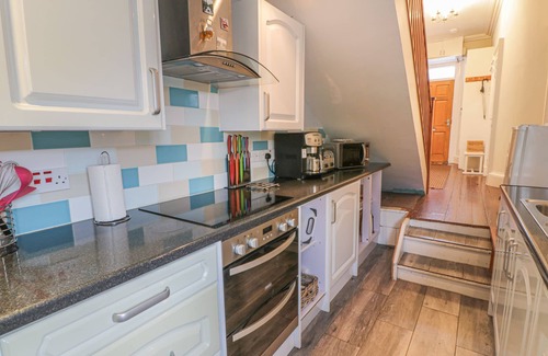 Amenities: Gas central heating. Electric oven and hob, microwave, fridge, washing machine, TV with Freeview, DVD, WiFi, selection of books, games and DVDs. Fuel and power inc. in rent. Bed linen and towels inc. in rent. Cot and highchair on request. Roadside parking, plus car park across the road. Decked area leading to lawned garden with furniture. Two well-behaved dogs welcome. Sorry, no smoking. Shop and pub 1 min walk. Note: Mobile phone reception is very limited. Note: There are 13 steps down to the rear garden from the kitchen door.