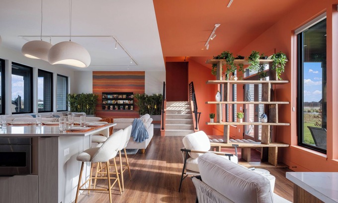 The main level living and dining area will take your breath away with the warm beautiful colors, the biggest deep and comfy couch for your whole group, a handmaid clay wall and a stunning view to a vineyard. Two soft and comfy armchairs will be a perfect spot for an intimate conversation, morning coffee or am afternoon read.