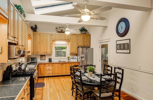 - Large eat-in kitchen with additional dining for 7, coffee bar, and ample counter space