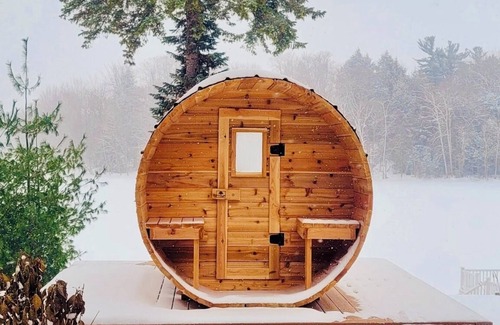 - Hot tub that fits 6+ and a brand new barrel sauna with electric heater that fits 6