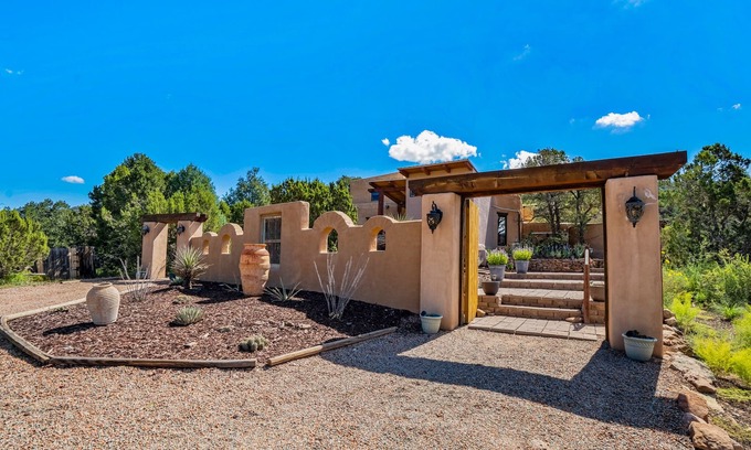 For over a decade, this two-bedroom, two-bath adobe has been a beloved VRBO destination. Now under new ownership, Casa de la Vaca II continues to offer guests the perfect blend of Santa Fe charm, comfort, and natural beauty. Set on 5 private acres in the secluded Cañoncito Valley, the home is just 12 miles from Santa Fe Plaza, close to the Agora Market, great restaurants, and miles of hiking and biking trails. Pet-friendly with prior approval ($100 per pet).