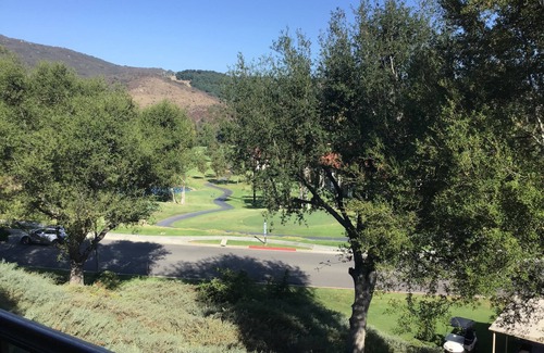•Spacious 1,370 square feet interior which accommodates up to 6 people. •Central living room with vaulted ceilings and queen sleeper. •Fully stocked kitchen with clothing washer/dryer and full-sized dining area. •Private master bedroom with king-sized bed. *Private second bedroom with two double beds. •Two dual-sink bathrooms, one featuring a large walk in shower and the master bathroom features a large soaker tub and walk in shower. •TV’s in both bedrooms & living room. •Private balcony with a lounging sofa and al-fresco dining area. •Gulf course, pond w/fountain, and mountain views from this Villa. *Free WiFi. •Five swimming pools with amenities including a 170’ slide, two golf courses, two tennis courts, basketball court, volleyball court, BBQs, fire rings, three ponds—one for fishing (which you can view from this Villa). •As little as 20 minutes from the ocean, 30 minutes from San Diego, and two hours from Disney Land depending on traffic. But you might never want to leave the resort!