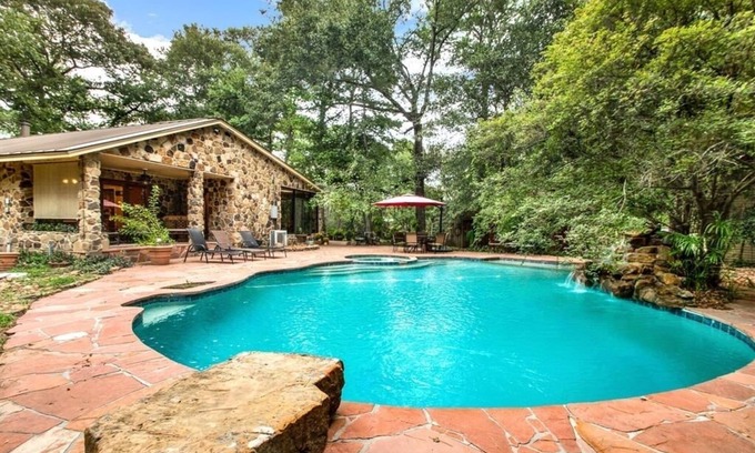 8 acres of fun & relaxation in a beautiful Rock Cottage with a pool and hot tub | Cottage in Tomball
