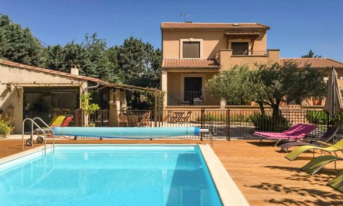 8 bedroom lovely home in Vézénobres is located in Vezenobres. 8 bedroom lovely home in Vézénobres provides accommodation, featuring Pool, Sports/Activities, TV, among other amenities. This House features Pool, Sports/Activities, TV, to make your stay a comfortable one.