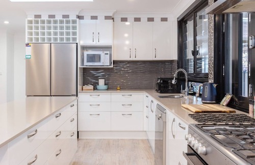 With bright modern features and furnishings throughout, a large private outdoor entertaining area, and the Forster Keys foreshore and river just across the road, this holiday home provides a great base to stay in comfort and head out to make use of the water.