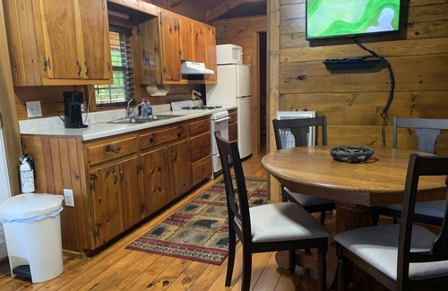 Welcome to the High County mountain cabin in Franklin N.C. Located 10 min. to town at the foothills of the Smokey Mountains .Dillsboro, Sylvia, Bryson City, Cherokee and Helen G.A. all with in 45min. Cabin has lodge décor with 1 Queen bed, full bath, kitchen and Livingroom. Air mattress available . Kids can also camp in the Livingroom with sleeping bags. We provide all house hold items and linens so just bring your bag for a fabulous getaway!