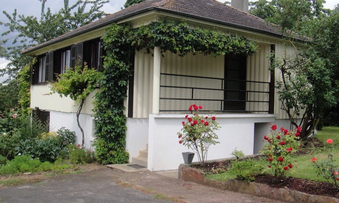 Pretty 2 bedroom holiday home with a large flowered garden with trees. Ideally located, quiet while being 500 meters from shops. Access to the river at 1km, forest at 10km and 20km from the Swiss Normandy.