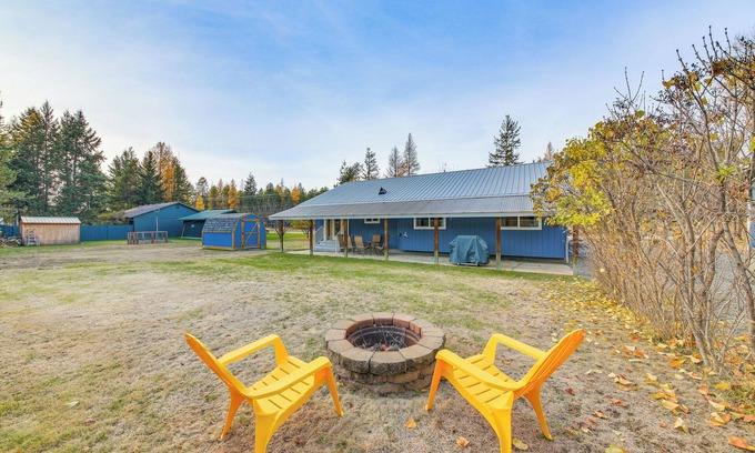 Outdoor adventure awaits at this Moyie Springs, ID, vacation rental! Featuring a quiet setting, serene furnished patio, and prime location just 8 miles from Bonners Ferry, this 3-bedroom, 2-bath house is perfect for a fun-filled getaway. Check out downtown restaurants and breweries, kayak on the Kootenay River, or visit Moyie Falls! After your adventures, return home to end the day relaxing by the fire pit.