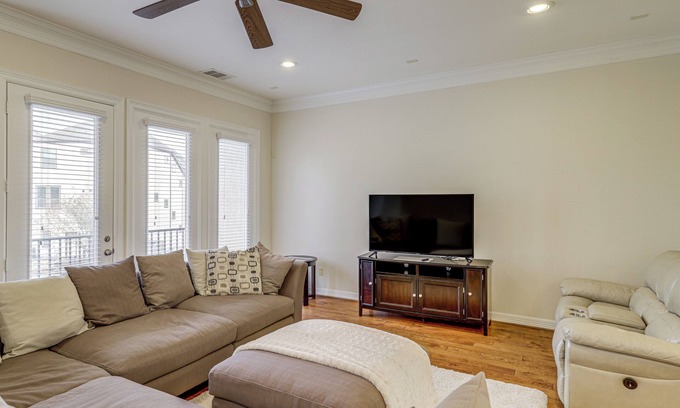 Your next fun-filled Texas getaway awaits at this Houston vacation rental! With a gated community setting, charming 3-story interior, and great location offering easy access to all of the city’s top sights, this 2-bedroom, 2.5-bath house makes the perfect base for exploring H-Town. Be sure to catch a game at Toyota Center, shop and dine at the Galleria, or tour the Houston Arboretum!