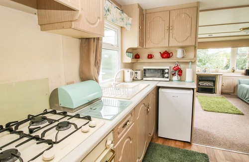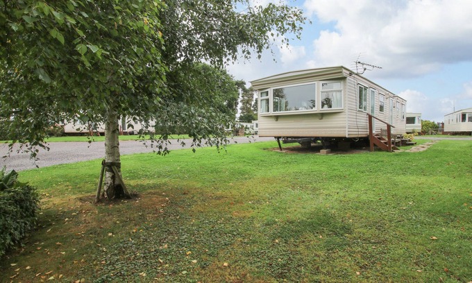The living areas in this caravan consist of an open-plan living space with kitchen equipped with gas oven and hob, microwave and fridge with ice-box, a dining table for four and a sitting area with TV and gas fire. The bedrooms consist of a double and a twin serviced by a bathroom. Outside there is off-road parking for two cars and a communal lawn with trampolines, swings and slides. On-site there is a shop and in 1.3 miles there is a pub. Highchair available on request. Sorry, no pets and no smoking. WiFi, fuel, power, bed linen and towels are all included in the price. Escape city life at 8 Old Orchard. Note: There is an on-suite laundry room available at a local charge. Note: There is an on-site freezer, as the property only has an ice-box. PLEASE NOTE: Bookings at this property must be a minimum of 2 nights. Please note: Infants are included within the maximum occupancy for this property.