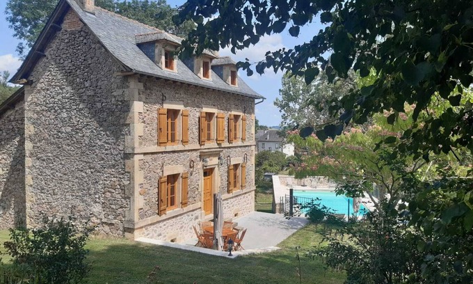 8-person gîte in the heart of nature with outdoor swimming pool is located in Lanuejouls. 8-person gîte in the heart of nature with outdoor swimming pool provides accommodation, featuring Balcony/Terrace, Fireplace/Heating, Entertainment, among other amenities. This House features Balcony/Terrace, Fireplace/Heating, Entertainment, to make your stay a comfortable one.