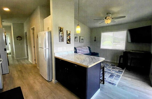 - Dog-friendly coastal-themed home with a full kitchen & washer/dryer