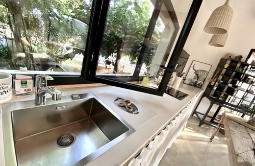 A bright space in lush greenery, with a summer terrace open to nature and the 14m pool being finished. A hectare of silence a few kilometers from the sea, surrounded by vineyards and olive groves. Some squirrels or wild boars could challenge you. The guest house of over 80m2 is dedicated to living well. A terrace of 35m2 open on the nature, a living room cooks of 30m2 with visible framework and clear view on the nature. The indoor kitchen is equipped for short and long stays of: Nespresso, mini oven, induction, kettle, washing machine, dishwasher ... if something was missing we are not far to react. The bathroom offers a walk-in shower with basin and toilet. (Equipped a 2018) The room (bed of 180) purified and luminous overlooks the olive trees and a hill "Pagnolesque".