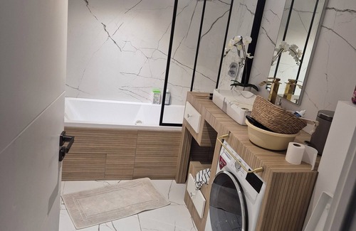 86 m2 luxury apartment with jacuzzi is located in Mosson. 86 m2 luxury apartment with jacuzzi provides accommodation, featuring Security/Safety, Bedding/Linens, Child Friendly, among other amenities. This Apartment features Security/Safety, Bedding/Linens, Child Friendly, to make your stay a comfortable one.