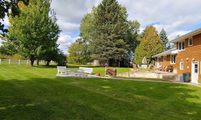 If you're looking for the ideal wedding accommodation, Come Enjoy! Sauna, Pool Table, Heated Garage, Firepit, Snowmobile Trails+Parking offers a spacious and charming setting that will make your special day unforgettable. This country chic 5-bedroom farmhouse is perfect for hosting family and friends while providing ample space for relaxation and fun.