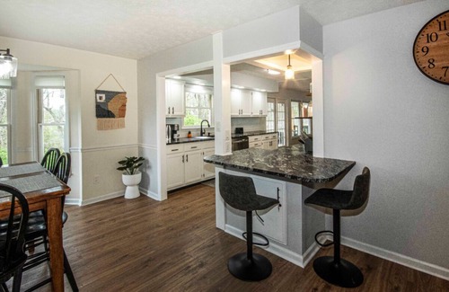 Spacious, renovated ranch close to UTK with deck, garage, sunroom, washer dryerIn Knoxville, find your spacious and ideal retreat in this comfortable 3 bedroom house. Nestled in a quiet neighborhood just a 13-minute drive from the University of Tennessee and 15 minutes from the iconic Neyland Stadium, this property offers easy access to the city's top attractions. Spend your days exploring Ijams, 20 minutes South or Norris Lake, 22-minutes North or driving the Dogwood Arts trails all around the city. Lots of greenways and libraries with trails nearby.