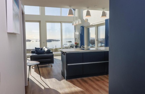 8B Carrigreich is a vacation home that provides guests a comfortable place to stay in Tarbert with a garden and free Wifi. Providing sea views, this vacation home also provides guests with a TV, a well-equipped kitchen with a dishwasher, an oven, and a microwave, as well as 3 bathrooms with a walk-in shower and a hair dryer. The accommodation has a fireplace. Guests at the vacation home will be able to enjoy activities in and around Tarbert, like cycling and fishing. Stornoway Airport is 41 miles away.