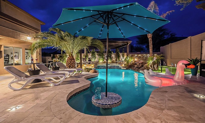 8BR/55BA Luxury Retreat w/4 En-Suites, HEATED Pool, Hot Tub,Pool & Arcades-SC has 8 Bedrooms , 5 Bathrooms, and max occupancy of 24 people. The minimum rental for this property is 1 nights, but this can change depending on the season you plan on staying. Previous guests have given good rated it, and VRBO labeled it a top-rated House because of the excellent services rendered by the owner or manager of this House, and has consistently provided great experiences for their guests. Most families or guests that use it recommend it to their friends and some of them are repeat guests. House has a friendly neighborhood, and the North Scottsdale has interesting places to visit. If you want to learn more about the House in North Scottsdale, such as places to visit and things to do nearby, you can check below to learn more.