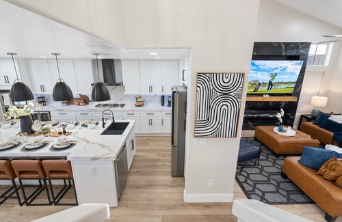 The most common bookings we receive on this home are families because of all the amenities in the backyard and inside the home. Inside, you’ll find thoughtful touches such as the 15+ board games in the game room, a billiards table, a dry bar, and Smart and Cable TV in every room, and 2 arcade games.