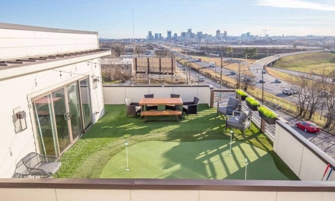 - Rooftop Entertainment Area: Enjoy breathtaking views of downtown Nashville from the rooftop deck, complete with a putting green and seating area, providing a picturesque setting for pre-wedding celebrations or casual gatherings.