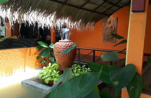 This poolside bungalow was built in 2015 adjoining the large salt water pool...2 to 3 steps away! Nothing is between you and the pool other than greenery!! Within easy sight of a gently cascading waterfall. Features open air lounge/sitting area and connecting kitchen with refrig, micro, Thai hot pot for tea and coffee, and all utensils, dishes and glassware--all the items necessary for a complete kitchen. Air conditioned bedroom with private bath with tub and shower.