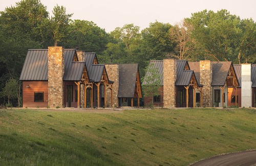 Discover peace in nature in this enchanting timber frame cabin surrounded by mature oak trees and peaceful lake views. 400 acres of hiking trails, two stocked lakes, and nearby attractions, this cabin will take your next vacation to a new level. Our two-bedroom cabin has the amenities you need including High Speed Internet and a wood burning fireplace. The Cabin comes equipped with a fully stocked kitchen. PETS WELCOME
