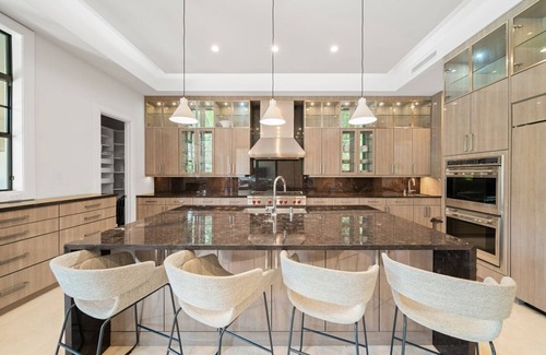 Large porcelain tiles throughout and premium appliances in the fully custom chefs kitchen