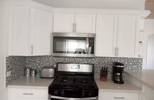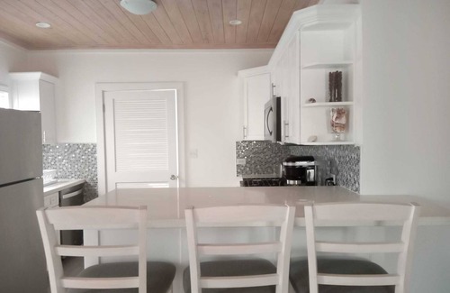 960 sq.ft. Beach Front Villa with breathtaking Ocean and Bay Views. Picturesque turquoise water and white Sandy Beach is perfect for a "home away from home" vacation home. Book your dream vacation with us!!! Peace awaits you at Sea The View Beach Villa. In addition to a modern and comfortable interior, we have a superior island style outdoor living...grill, beach chairs and kayaks are available for our quest. The Villa is Less than 20 steps away from the water, you can see your toes in the water is so clear!! The pictures does the water no justice. You have to come and see it to experience it.