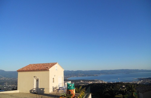 New villa classified furnished with tourism 3 stars (official classification in prefecture under the n ° C0134 / 2012), Arrived possible in week out season, calm, in the countryside in an exceptional site with a panoramic sight on the gulf of Ajaccio and on the gulf of lava since the stay, the terrace and the garden. facing south, 10 minutes from downtown Ajaccio and 10 minutes from sandy beaches. Private land of 200 m2 with parking and garden, 15m2 terrace with barbecue and deck chairs. WiFi internet access. Beautiful sea view from all the rooms of the house. Nice view also on mountain (vizzavona and punta castles) .View on sunrise and sunset. Furnishing all comfort and quality. Price all charges included with heating included. The animals are refused. Sheets are not included, they are offered for rent at 10 euros the finery and towels 5euros per person. Checks accepted