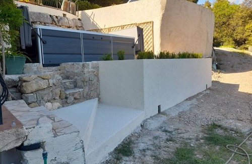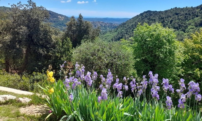 Located on a very private property surrounded by trees, the apartment is part of a English owned villa at an elevated position with no one overlooking it. It gives the impression of being lost in nature. It has fabulous views of the hills, forest and all the way down to the Mediterranean Sea.