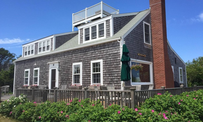 Authentic Nantucket widow's walk with bench seating has 360-degree views of the island, including the ocean and the entire Surfside area. Enjoy spectacular sunsets, star-filled skies at night and the occasional fireworks show
