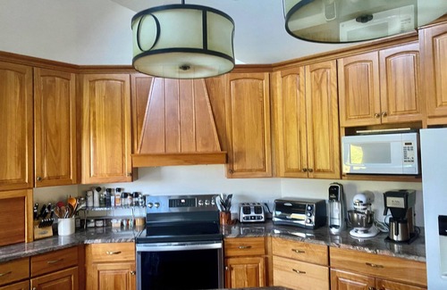 There is a mudroom on the first floor where the washer/dryer is located as well as the half bathroom. The attached garage is accessed through the mud room, ideal for skiers. Air conditioning is rarely needed, but available in all bedrooms and the living room. WiFi and several streaming services are included-Netflix, Hulu, HBO/Max, Disney+ and Prime. All linens are 100% cotton. Towels, hairdryers and paper products are included.