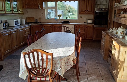 Welcome to our beautiful house on very quiet lane, near Ballaghaderreen, Castlerea, Knock Shrine and Airport. In warm location, near stunning lakes with swimming/fishing, 50 mins from coast. The house is tastefully furnished with 4 large bedrooms, two with king size beds, one ensuite, plus a smaller 5th bedroom; huge kitchen with lounge area, fantastic long, mahogany dining table, and very large woodburner; separate lounge with reclining leather sofas, cosy wood burner, large HD Smart TV. Big garden/parking. Table tennis table in garage. We offer substantial discounts on any stay of 7 nights or more, which will be reflected in the price quoted.