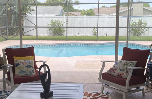 A Beautiful Home—mins to beach! is located in West Melbourne. A Beautiful Home—mins to beach! provides accommodation, featuring Pool, View, Bedding/Linens, among other amenities. This House features Pool, View, Bedding/Linens, to make your stay a comfortable one.