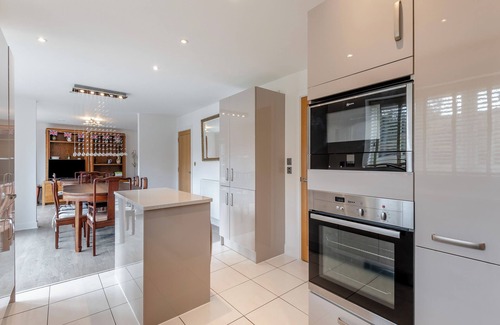 Bathroom: Bath, Cubicle Shower, Heated Towel Rail, Toilet. Gas central heating, electricity, bed linen, towels and Wi-Fi included. 2 highchairs availavble on request. Welcome pack. Enclosed, lawned, rear garden with patio and garden furniture. Front lawned garden. Balcony. Garage parking for 1 car, private parking for 2 cars; additional on road parking. No smoking. Please note: Sorry, no stag or hen parties. The garden is on two levels. This property has a security deposit of £150.. This seven-bedroom property is an absolute gem! Located within an exclusive estate in Minster, Sheerness, this detached property is perfect for family holidays and serves well as a celebration house for generations of the family to enjoy. With a large two-tiered garden and very spacious rooms, children can play in the living room/games room whilst the adults cook and enjoy a glass of wine or two upstairs. Beach 2½ miles.