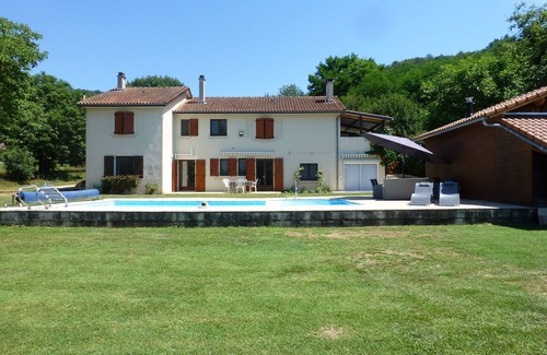 A lovely fully furnished and fully equipped apartment (all bed linen, sheets, duvets, blankets, bath towels and pool towels are provided). The apartment is part of a shared home, situated in a lovely sleepy countryside village, yet only 6 minutes drive from a bustling town. The apartment comprise the ground floor level. It has a double bedroom (which has an additional double bed if required). The second bedroom comprises twin beds with separate toilet. The apartment has a modern family sized shower room, a fully equipped kitchen with washing machine, American style fridge freezer with ice maker, coffee machine, toaster, blender etc etc. The Living room (with French and UK TV & DVD ) comprises 2 bed settee’s and has direct access to the garden and swimming pool. The property is remote enough to have a fantastic relaxing holiday or can act as an excellent base, to visit the many historic towns and villages of SW France. The property is accessed through an electrically operated gate, affording ample privacy and secure private parking. The immediate surrounding area is great for both hilly and flat walks with the beautiful River Aveyron just 0.5 miles from the apartment. The historic town of Villefranche de Rouergue, only 6 mins by car, boasts all the usual supermarkets, cafes and restaurants and has its fair share of gorgeous bakeries. The owners have 2 dogs and a cat and are therefore pet friendly, so pets are welcome with prior consent of the owners.