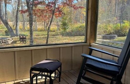 Open the sliding glass door, breathe the mountain air and listen to the sounds of the creek as you enjoy a large screened in patio with outdoor dining table, chest filled with board games, and 3 rocking chairs. There is also an outdoor fire pit to enjoy roasting marshmallows and have great conversations with two sitting benches.